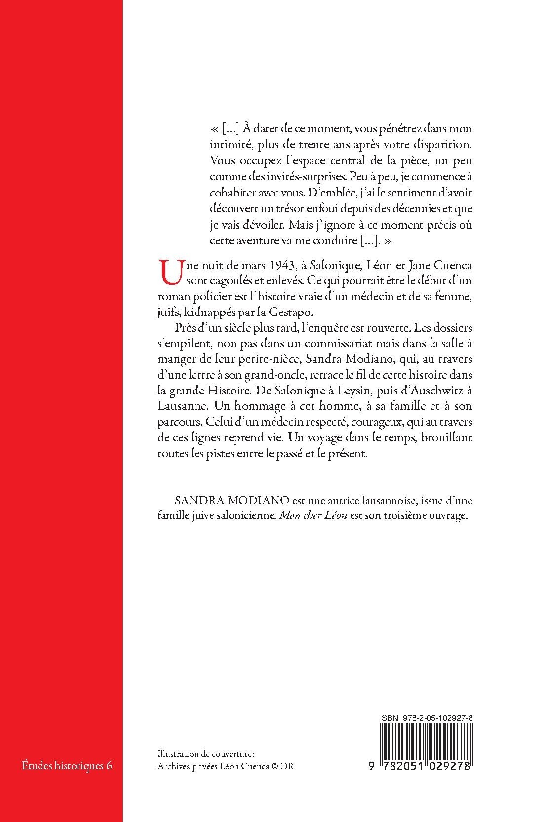 SANDRA MODIANO est une autrice lausannoise, issue d’une famille juive salonicienne. Mon cher Léon est son troisième ouvrage.